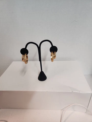 Monet 2 Pairs Brushed Gold Tone Clip On Matching Earrings 0.75" Other 1.25" Pics