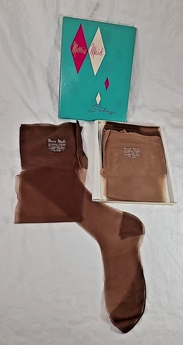 3 Prs - Vtg. Merrie Maid Stockings / Sz. 9 / Seamless Mesh / 2 Pecan + 1 other
