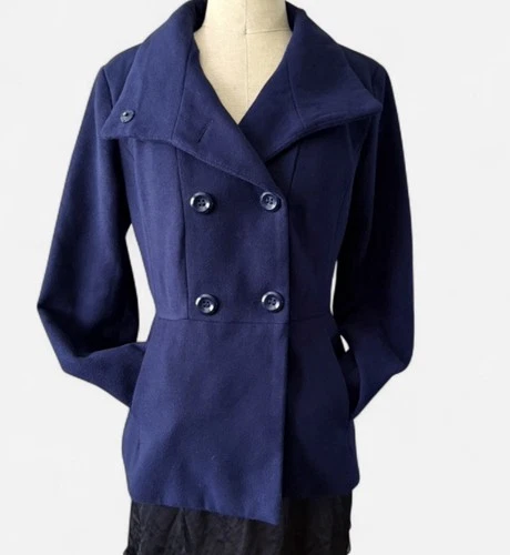 FOREVER 21 Black Peacoat Jacket Military Style Double Breasted Coat S Officecore