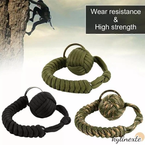 Paracord Keychain With Steel Ball Backpack Outdoor Survival Monkey Fist Durable~