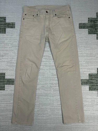 Levis 513 Slim Straight Jeans 31 Beige Denim Logo Cotton Stretch Mid Rise 32x30