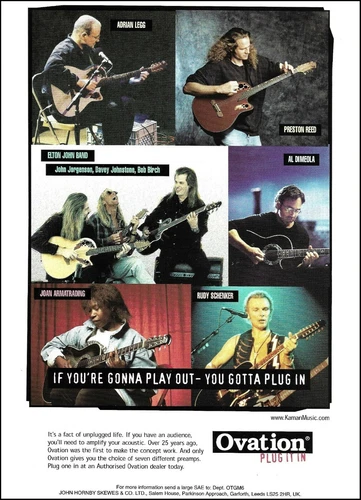 1997 Ovation Guitar Ad with Elton John Band Al DiMeola Rudy Schenker Adrian Legg