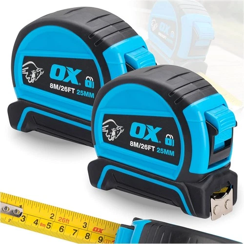 OX Tools Pro Dual Auto Lock Tape Twinpack - 8m / 26ft, Blue (OX-P505488)