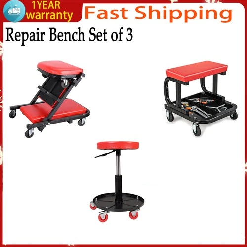3PCS Workshop Creeper Stool Seat Pneumatic Mechanic Car Motor Bike Garage Chair