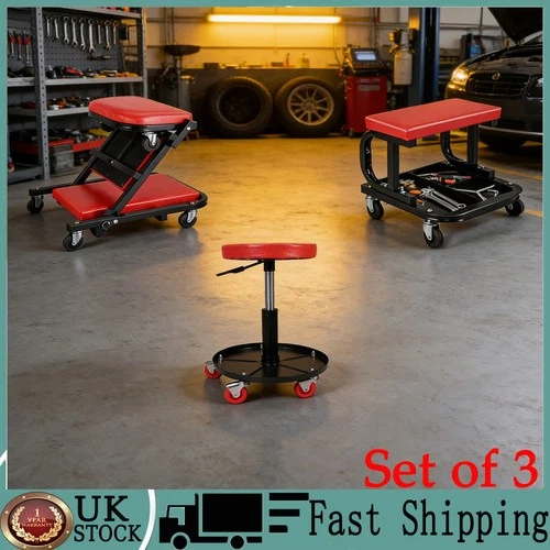 Set of 3 Folding Rolling Padded Mechanics Car Creeper Trolley Seat Stool Work
