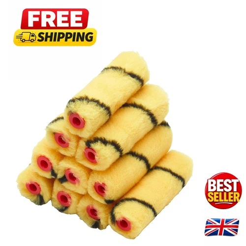 Efficient 4-Inch Mini Paint Rollers - 10 Pack for Smooth Trade Finish & Control