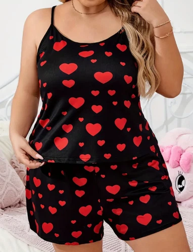 black red heart pattern camisole shorts pyjama set BNWT size 22 stretch comfort