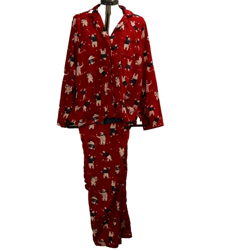 Old Navy 2 PC Polar Bear Flannel Pajama Set Button Shirt Drawstring Pants Red XL