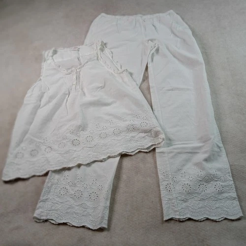 Shabby Chic Rachel Ashwell Pajama Set Womens M White Cotton Eyelet Trim Flaws