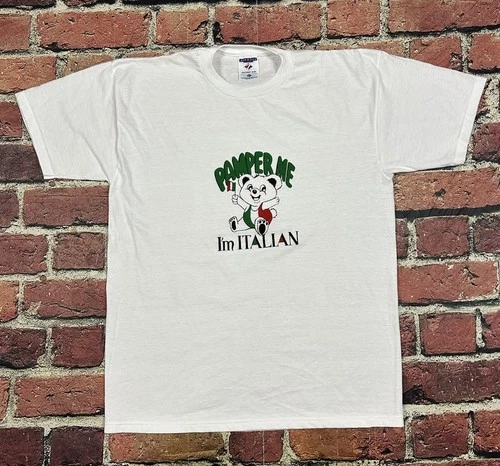 Vintage 90s Pamper Me I’m Italian Cute Teddy Bear T Shirt Italy Men’s Large USA