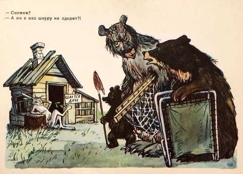 Vintage Postcard 1956 Soviet Fairy Tale Three Bears Hare Comic Animals Unposted