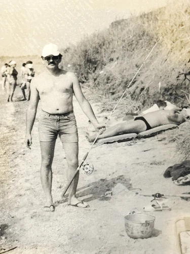 Gay Interest Vintage Photo 1970s Shirtless Muscular Fisherman Man B&W Snapshot