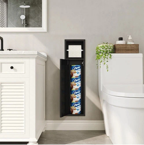 Recessed Toilet Paper Holder w/ Storage Cabinet Matte Black Stainless Steel