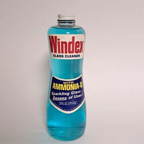 Vintage 1973 WINDEX full NOS 20 oz Glass Bottle Paper Label Drackett no UPC prop