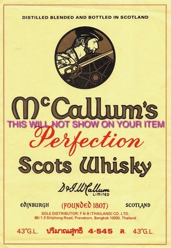 Scotch Whisky Paper Label McCallums Edinburgh Scotland Thailand Import 9”x6"