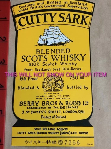 Cutty Sark Scotch Whisky Paper Label Import Japan 6"x3.1/4"