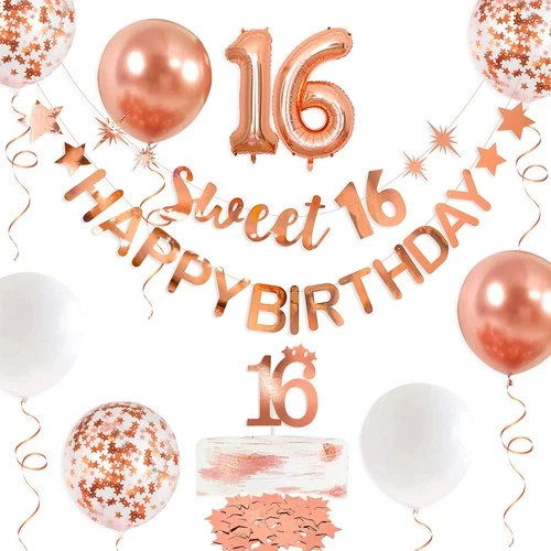 Rose Gold Sweet 16 Happy Birthday Banner Garland for Cute 16 Decorations Hanging...