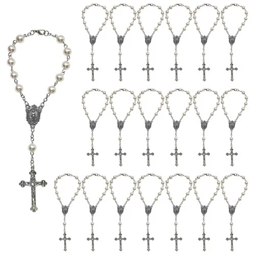 20pcs Christening Rosary Rosary Bracelet Cross Gift Baptism White 8mm...