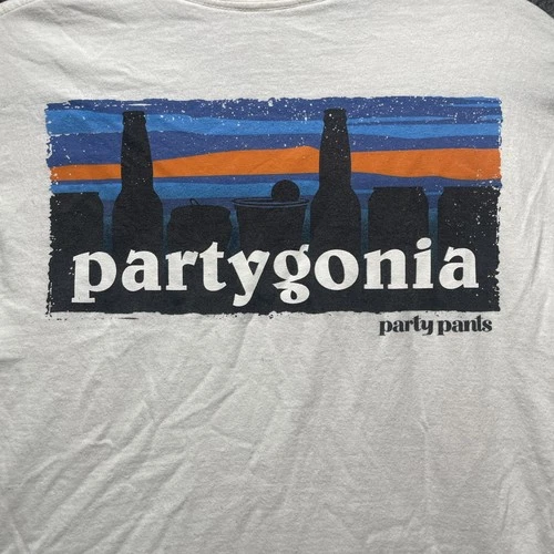 Party Pants Partygonia T-Shirt Men’s Medium Crewneck White Festival Travel