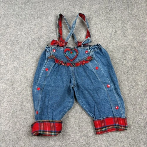 Kolby Kids Suspender Denim Pants Baby Girl 24M Plaid Heart Ruffle Vintage Blue