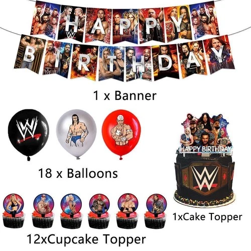 32pcs Banner, Cake Topper&Balloons Set Kid Wrestling Theme Child Birthday Party