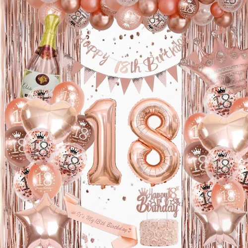 Rose Gold 18Th Birthday Decoration for Girls - Happy 18Th Birthday Banner for Gi