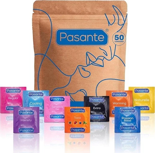 Pasante Condoms Variety Pack - Mix of 50 | The Mixed Pack Contains: Flavoured