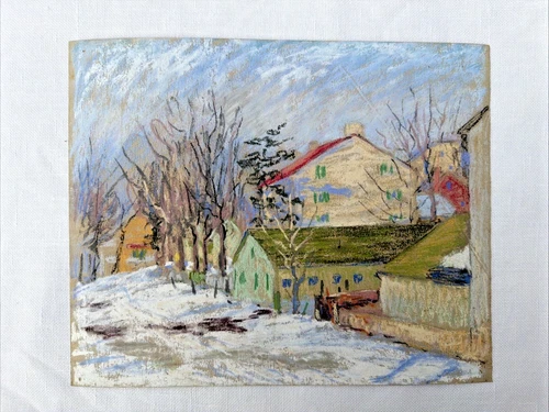 Colorful Albert Van Nesse Greene Pastel Of A Snowy Country Landscape Unframed