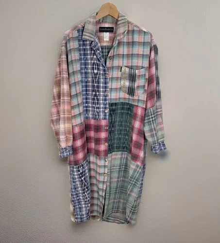 VTG Sundance x Citron Patchwork Flannel Plaid Button Up Shirt Dress Sz M RARE