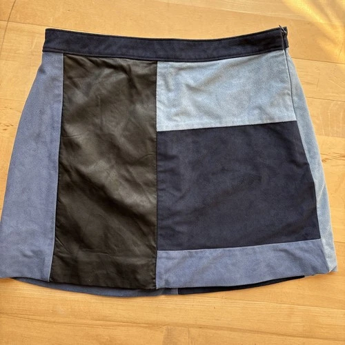 Abercrombie Fitch Patchwork Mini Skirt 6 Faux Suede Siren Y2K Black Blue Moto