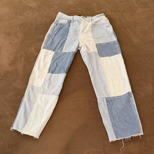 Hollister Jeans Womens 28 Blue Patchwork Mom Denim Bohemian Y2K Ultra High Rise