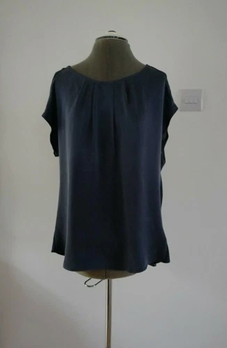 New PBO Top Women Size S Silk Viscose Blue Crew Neck Summer Casual Danish Design