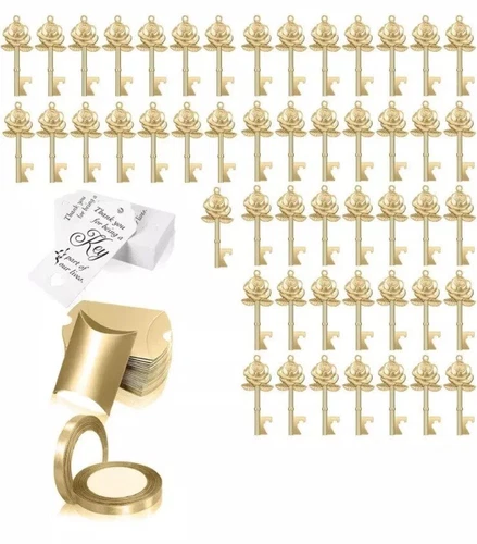 Wedding Invitations Guest Gifts Gold Rose Keys w Thank You Cards Goodie 50pc New
