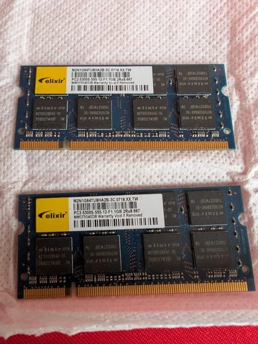 2x Elixir 1GB PC2-5300S DDR2 SO-DIMM M2N1G64TU8HA2B-3C 667Mhz LAPTOP MEMORY