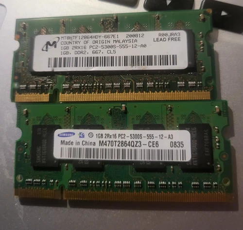 SK Hynix 2x 1GB DDR2 HYS64T128021HDL LAPTOP MEMORY PC2-5300S, Read description