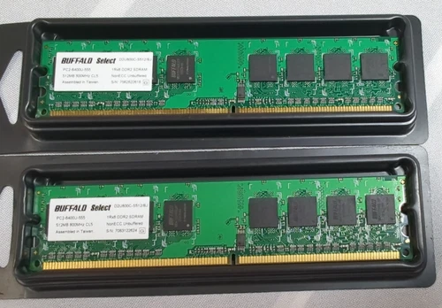 2x 512MB DDR2 800MHz PC2-6400 Desktop RAM DIMM CL5 Non-ECC Unbuffered Buffalo