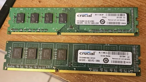 8GB (2 x 4GB) Crucial CT51264BA1339.M16FKR PC3-10600U DDR3 Computer Memory RAM