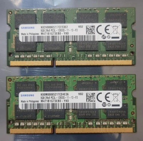 Samsung 16GB 2X8GB DDR3L 2RX8 1600MHz PC3L-12800S 204pin Laptop Memory RAM