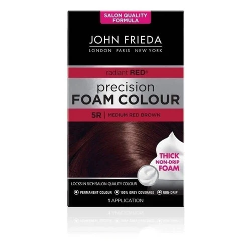 John Frieda Precision Foam Colour 5R, Salon-Finish Medium Red Brown Hair Dye, Pe