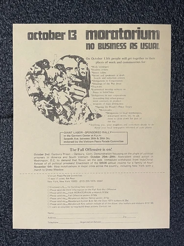 VINTAGE LEAFLET 1971 Vietnam War PEACE Movement Anti War LABOR Movement New York