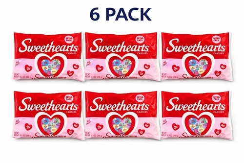 6x Sweethearts Conversation Hearts Candy 10.5oz Retro Bag Valentine (BB 11-2028)