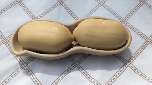 Vintage Avon Mr. Peanut Nutty Soap Dish & 2 Bars of Peanut-Shaped Soap EUC