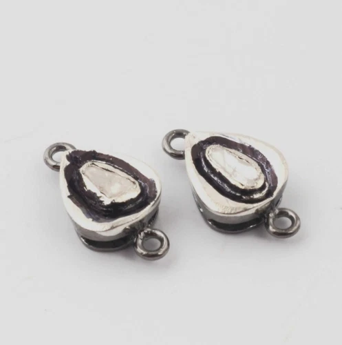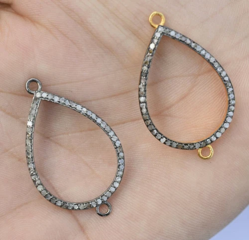 Pave diamond charm 925 sterling silver polky pear shape rose cut connector