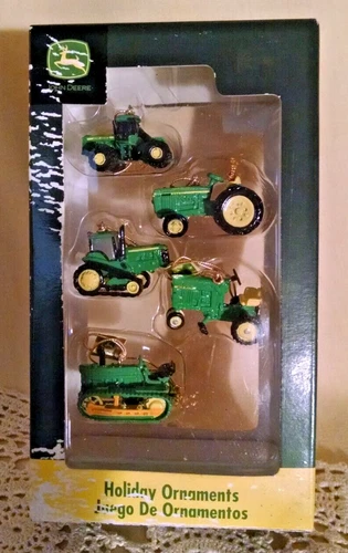 JOHN DEERE TRACTOR ORNAMENT SET 5 MINI MINIATURE ENESCO CRAWLER ROW CROP PEDAL.