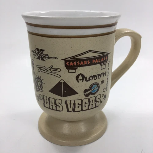 Vintage Las Vegas Souvenir Mug Cup Casinos Pedestal Base Western Supply 1996