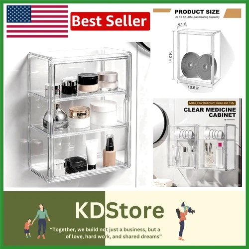 Wall-Mounted Adhesive Medicine Cabinet - Waterproof, Clear, Adjustable Storage
