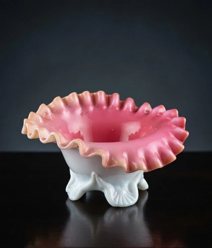 Vintage Fenton Pink Cased Glass Ruffled Pedestal Bowl - Three-Footed Shell Base