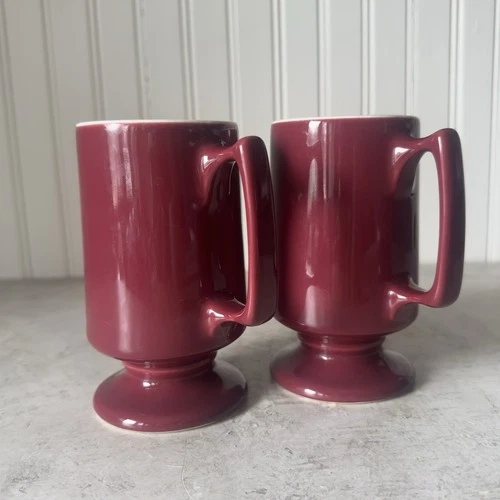 VTG Hall China # 1872 Burgundy Maroon Irish Coffee Mug Set Of 2 Pedestal Cups