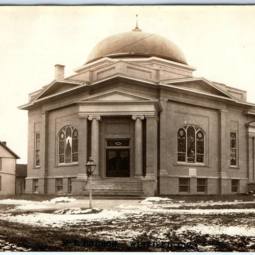 c1910s Winfield, IA RPPC Methodist Church ME Pediment Architecture Dome PC A106