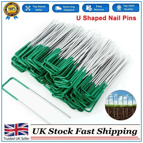 Artificial Grass U Pins Half Green Metal Galvanised Pegs Staples Weed Astro Turf